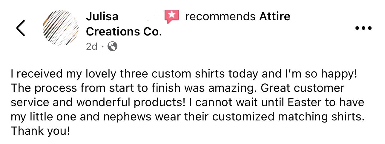 My new favorite shop! Attire Creations Co has such unique and meaningful designs. I love supporting a small business that puts heart into every order!